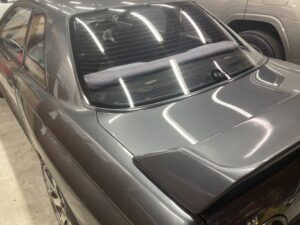 ボディを磨く前にウィンドウフィルムの施工。