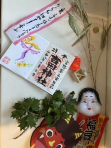 某神社で購入した”ひいらぎいわし”を飾って・・・。